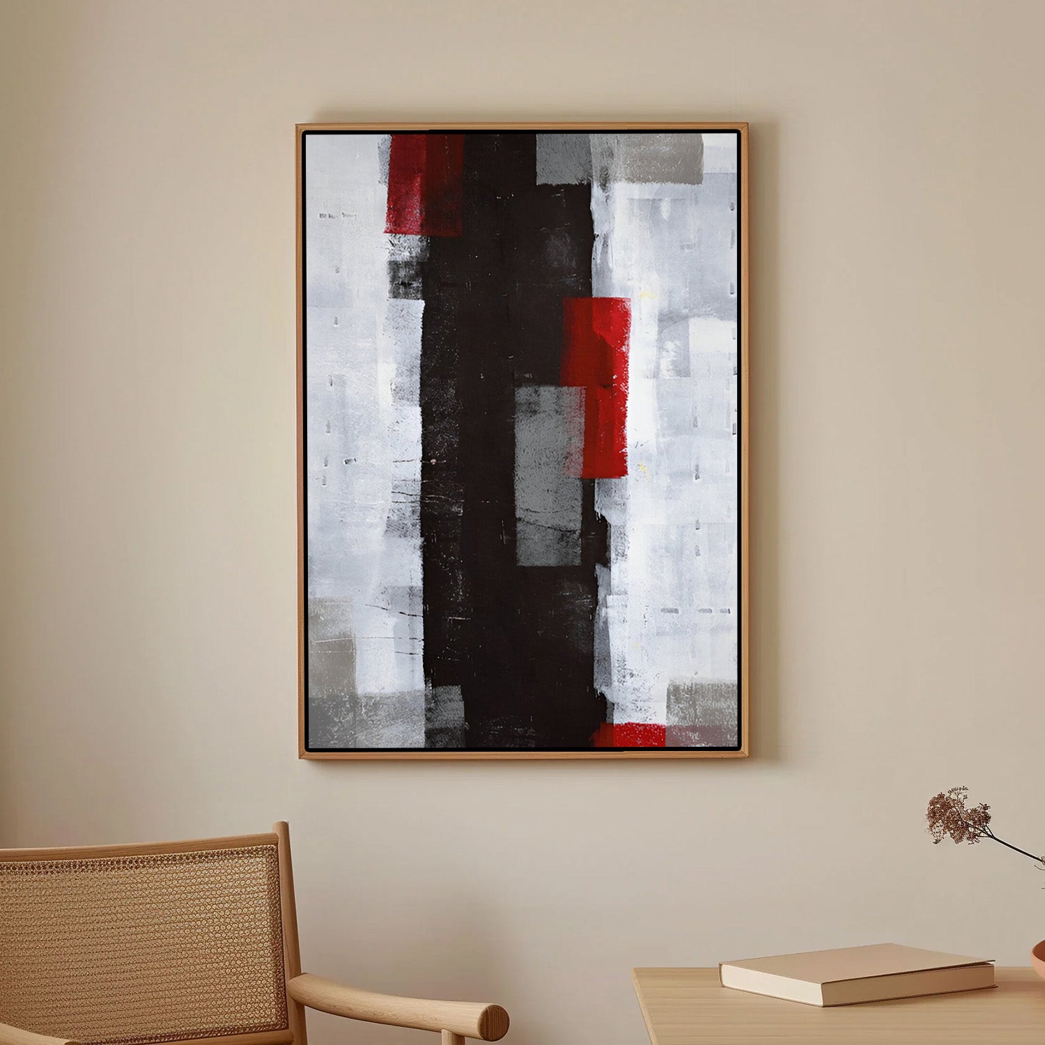 Crimson Axis – Modern Geometric Abstract Canvas