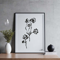 Whispers in Ink: Black & White Floral Line Art Print